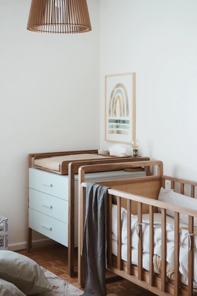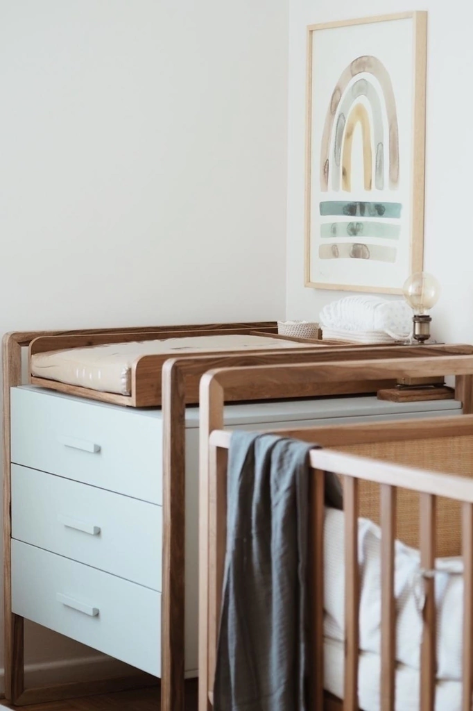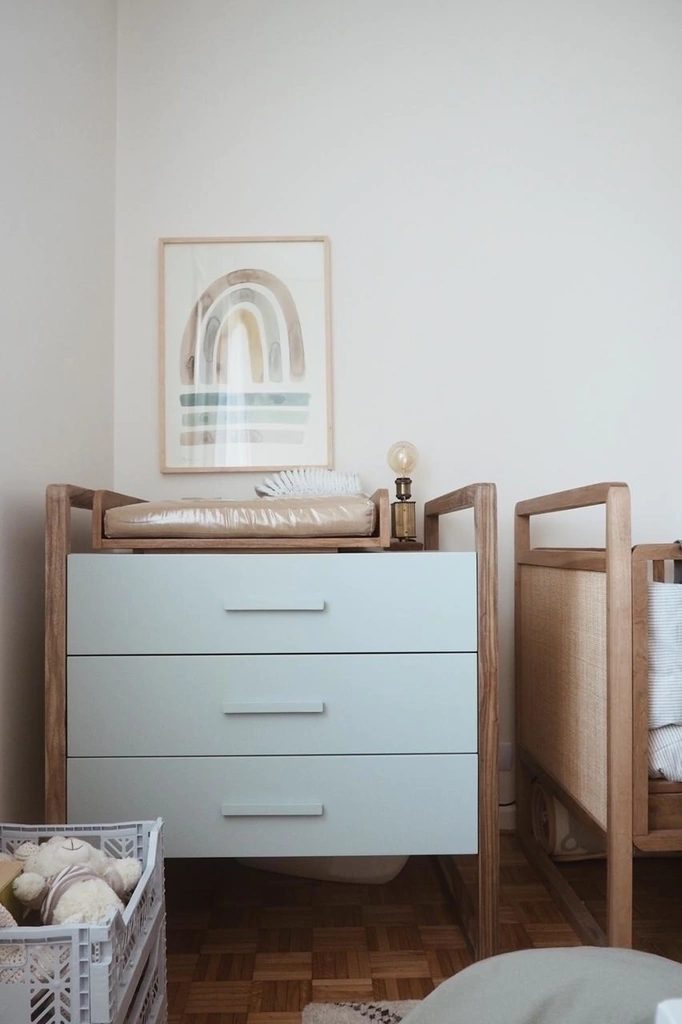 Con estructura en petiribí macizo y cuerpo laqueado en color a elección, con tres cajones (con correderas telescópicas).