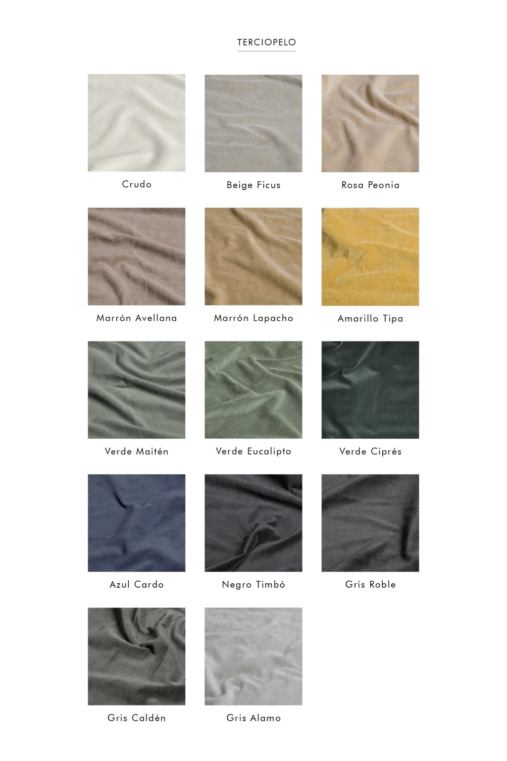 De MDF tapizado en terciopelo teñido en color a elección, con base en paraíso.