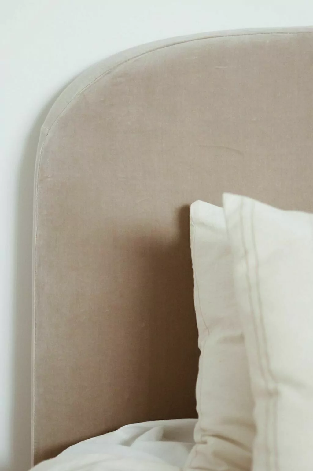 Estructura de madera con goma espuma con puntas redondeadas. Tapizado en terciopelo. Color a elección, el de la foto es color beige ficus.