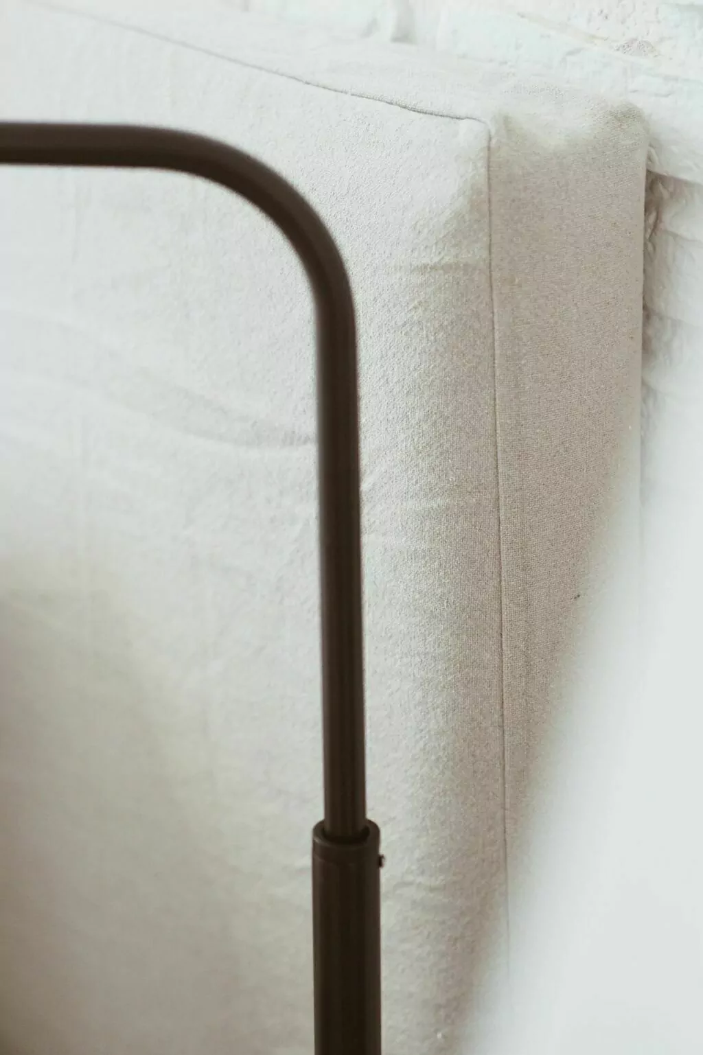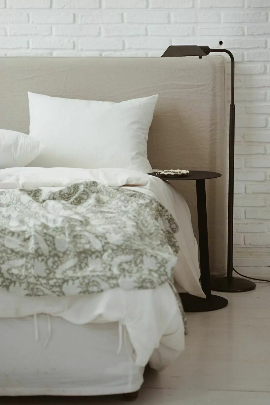 Estructura de madera con goma espuma. Tapizado en algodón natural + funda de lino en color beige. Funda lavable con terminación simple, con cierre atrás.